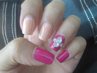 Here's a mani I did after seeing a japanese nail mag online. This is fairly easy as the magazine page shows a DIY on the rhinestone pattern I did on my accent finger and middle finger.
