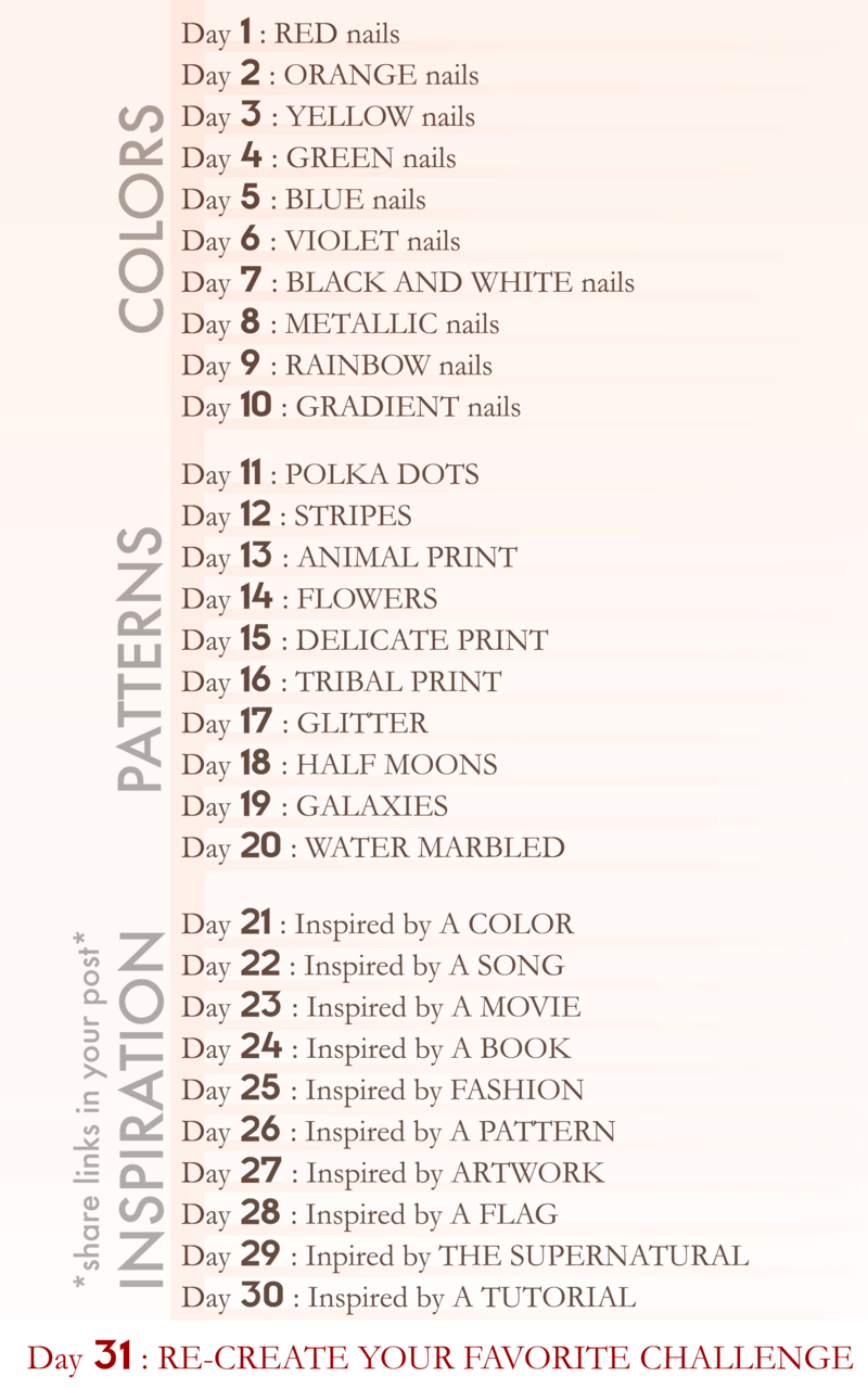 I have finally decided to keep blogging with Blogger. Sorry for the last post in which I said that I'll be moving to Wordpress. I just couldnt get all you lovely followers there. So in the spirit of blogging, I will be doing the 30-day nail challenge! Yay! Thanks for staying with me. Here's to more nail polish posts! :D