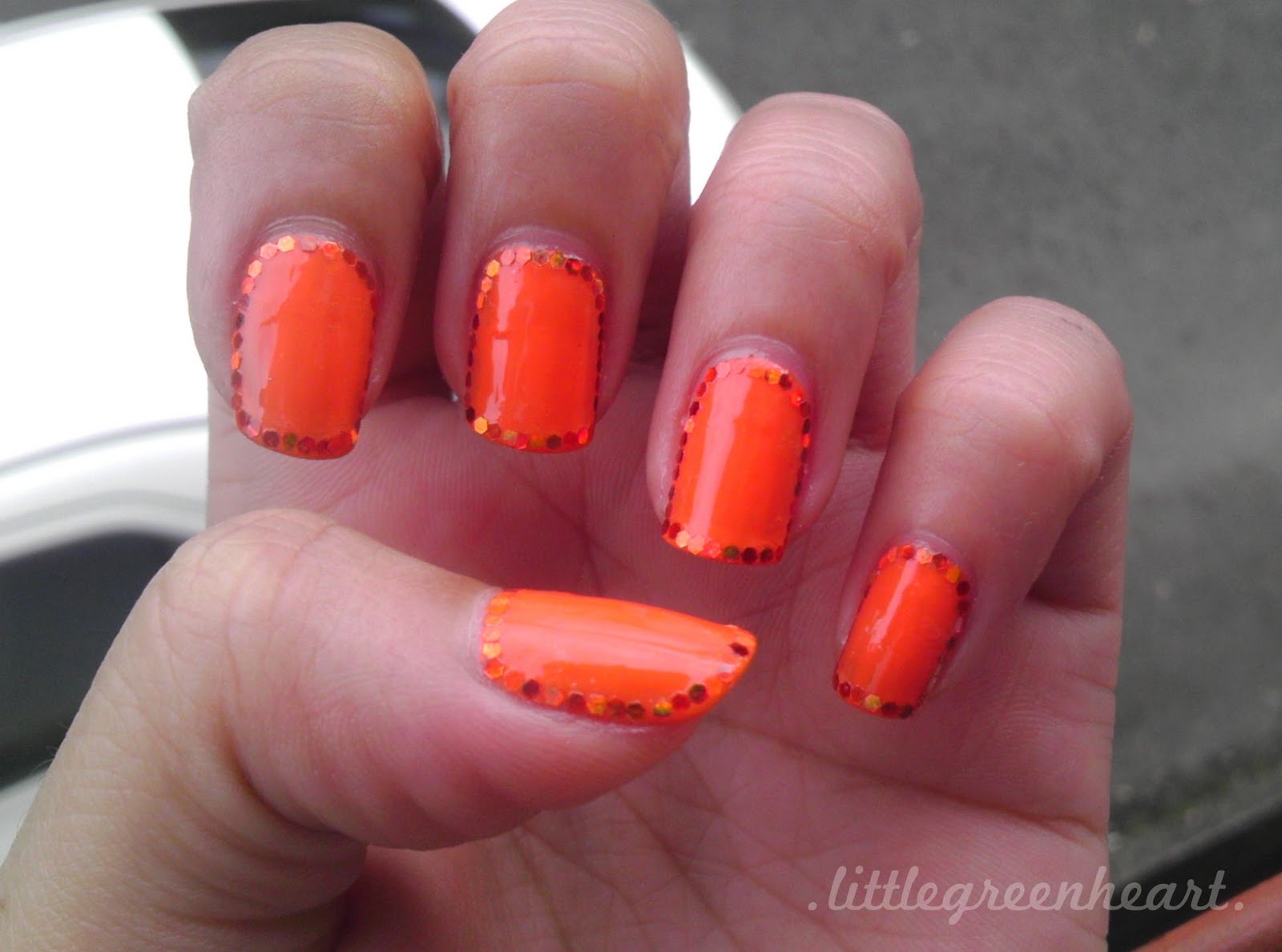 Day 2! Oh gosh.. i think i got a little carried away with the color orange. :D i remember seeing this mani on tumblr last year and decided to try that mani out using loose orange hexagon glitters just sitting away in my helmer. So what do you guys think about it? Honestly, im really loving it and am wondering wether or not to keep it for more than a day or two. :) happy day ladies!!
