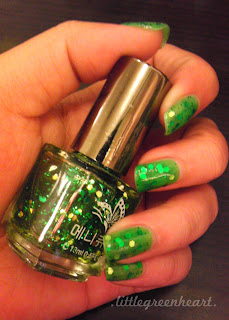 Glitter- Some unnamed korean glitter polish that has green and gold glitters. :3