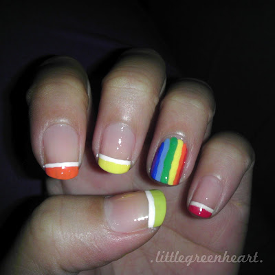 Rainbow Nails!! :D I saw this cute mani at Beauty Nail Art's page, and thought that it was sooo cute!! soo.. I'm gonna go back to watching 'Valentine's Day' now.. tata and HAPPY VALENTINES!! xoxoxo!!