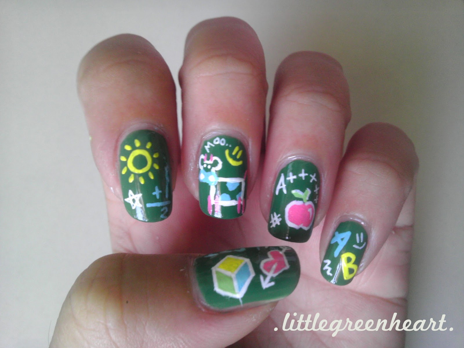 So.. I've been neglecting my nails lately.. Just painting on nail polish without any nail arts.. but! I'm trying to get into the hang of doing nail arts again.. so.. I've joined in @dulllikeglitter's #backtoschoolnails contest on instagram. :D For the contest, I went ahead and watched Robin Moses' youtube channel on her Easy Back To School Chalkboard Nail Art 427 for some inspiration. :)